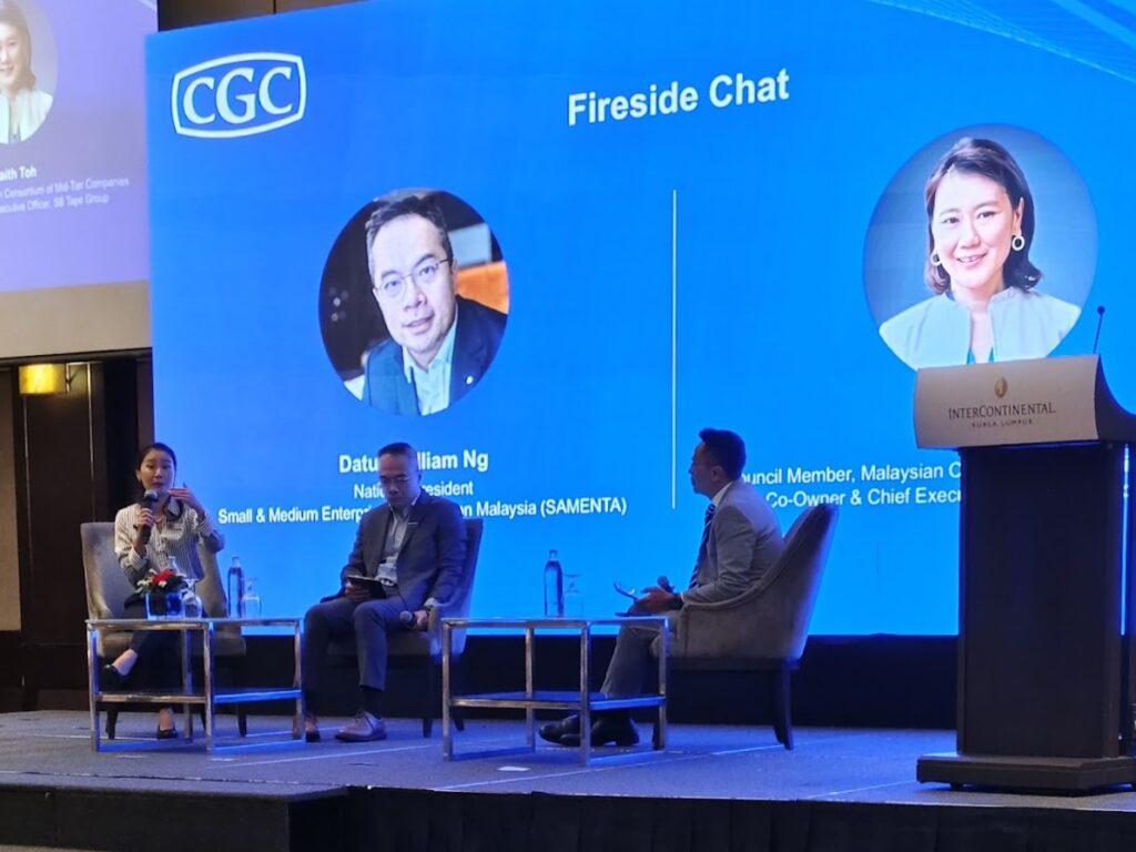 During the Event, as our Hon. President Mr. Callum Chen was unable to be present due to prior engagement, a video of his interview with CGC recorded earlier for the event, was screened. In the Fireside Chat session moderated by Mr. Azman Idrus (Head, Strategic Management & Communications of CGC), our Council Member Ms. Faith Toh (CEO of SB Tape Group) and Datuk William Ng (National President of SAMENTA), shared their perspectives and insights on MTCs and SMEs respectively. The Panel discussed and explored how the banking sector can work together to boost domestic direct investment (DDI) in Malaysia.